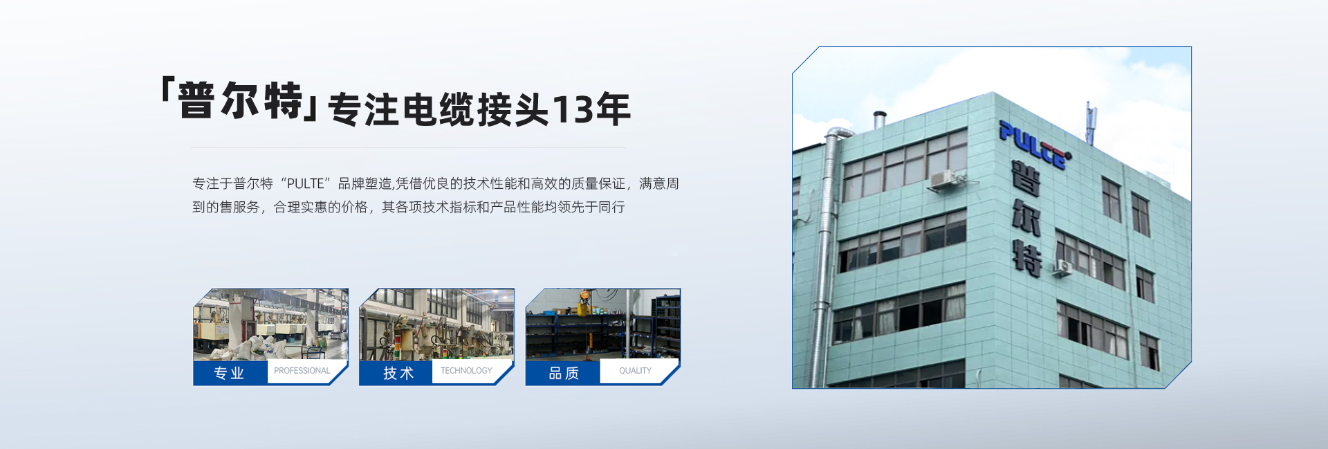 普爾特電氣科技(溫州)有限公司是一家專業生產電纜接頭,防水接線盒的專業廠家,它誕生在"中國電器之都"柳市鎮,是一家集研發、生產、銷售于一體的專業化現代企業。 專注于普爾特“PULTE”品牌塑造,憑借優良的技術性能和高效的質量保證,滿意周到的售服務,合理實惠的價格,其各項技術指標和產品性能均領先于同行,廣泛應用于接線盒、配電柜、通訊設備、儀器儀表、醫療器械、機床機械等多個領域;不斷推陳出新,研發新品,形成多系列多品種的防水電纜接頭,防水接線盒,堵塞件,電纜接頭配件,軟管防水接頭等產品,有效拓寬了企業的市場渠道,增強了市場競爭力,為擴大企業規模奠定了基礎。       公司技術力量雄厚,由一批行業資深人士共同組建,在電纜接頭制造領域具有領先地位?!∥覀儞碛型晟频馁|量保證體系和豐富的設計制造經驗,以產品的高品質、高可靠性廣泛應用于各個行業,為全球需求者提供專業、高質量的電纜配套產品,相信在我們完整的系列產品中一定能有一款滿足您的需求。      公司始終堅持“為顧客創造滿意產品”的經營理念,以質量占領市場,以科技塑造品牌,不斷實現企業的持續向前發展。本公司可以根據客戶的要求,進行模具開發和生產。竭誠歡迎國內外新老客戶前來公司考察及洽談合作,共同創造美好的明天。 ...